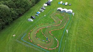 This is an example of the circuit at FootFest. This is a smaller private event, but the aerial photo shows a typical layout of the track, pits and timing gantry.